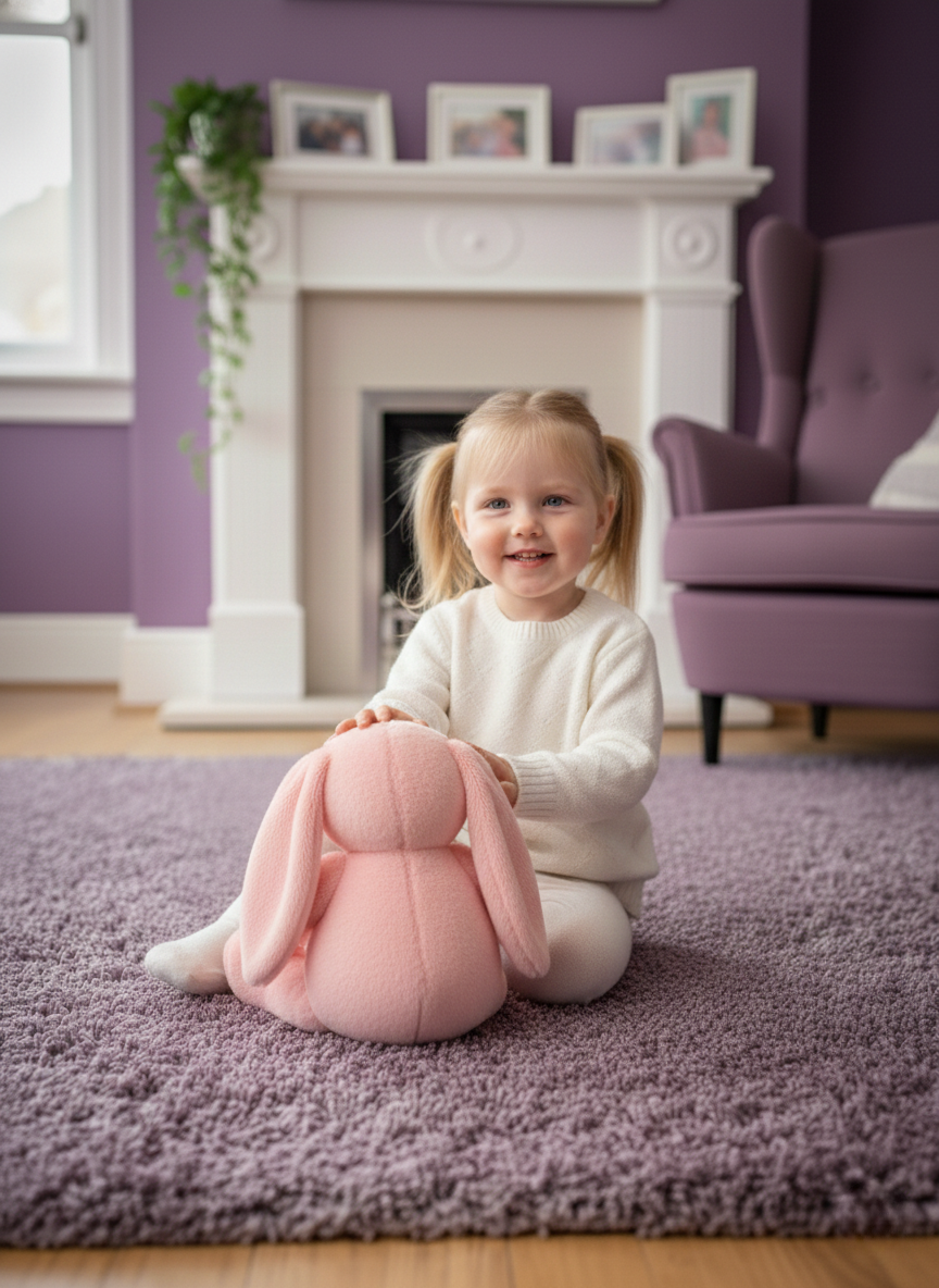 The bunny is filled with high-grade, non-toxic fiber that helps it retain its shape while remaining lightweight and squishy. At 30 cm tall, it’s just the right size—easy for little hands to carry, yet big enough to make a comforting presence at bedtime. Whether placed on a bed, sofa, or nursery shelf, it adds a cute and cozy touch to any space.